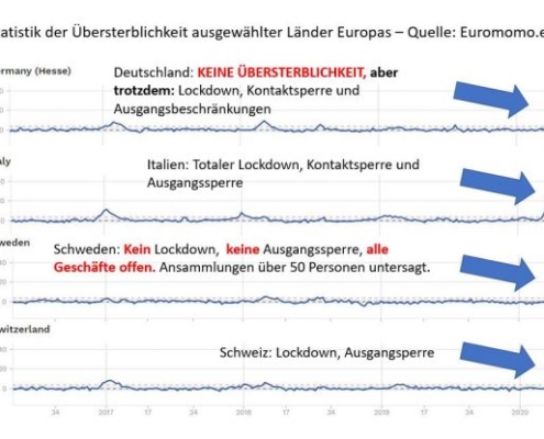 Anfang Mai berichtete ich bereits, dass der Lockdown nichts bringt. Basis dieser Behauptung war der Vergleich einiger Länder mit und ohne Lockdown und der Entwicklung von deren Übersterblichkeit.